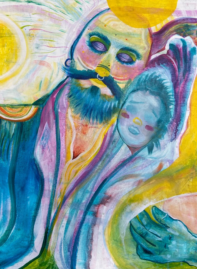 Medium: acrylic paint, oil pastel, mixed media, lyrical