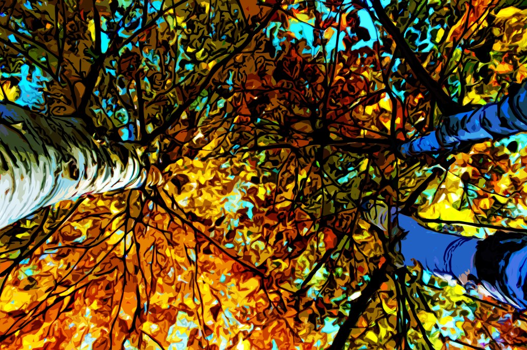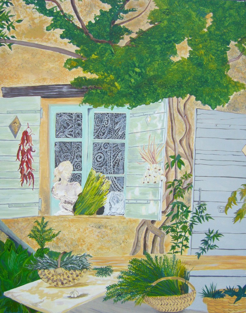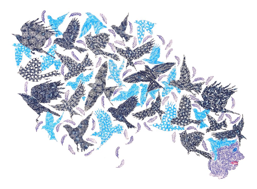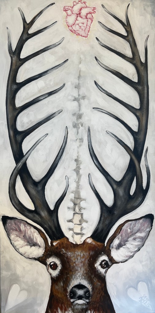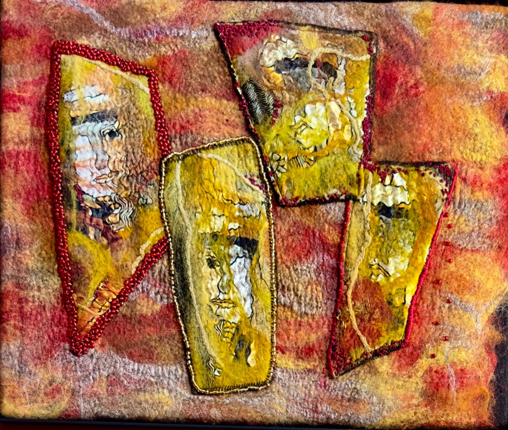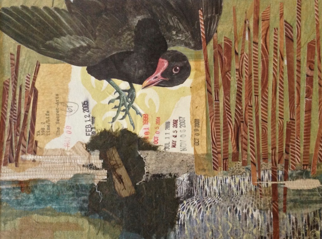 Medium: painting, walnut ink, pencil, photography, mixed media, graphic design, up-cycled materials.