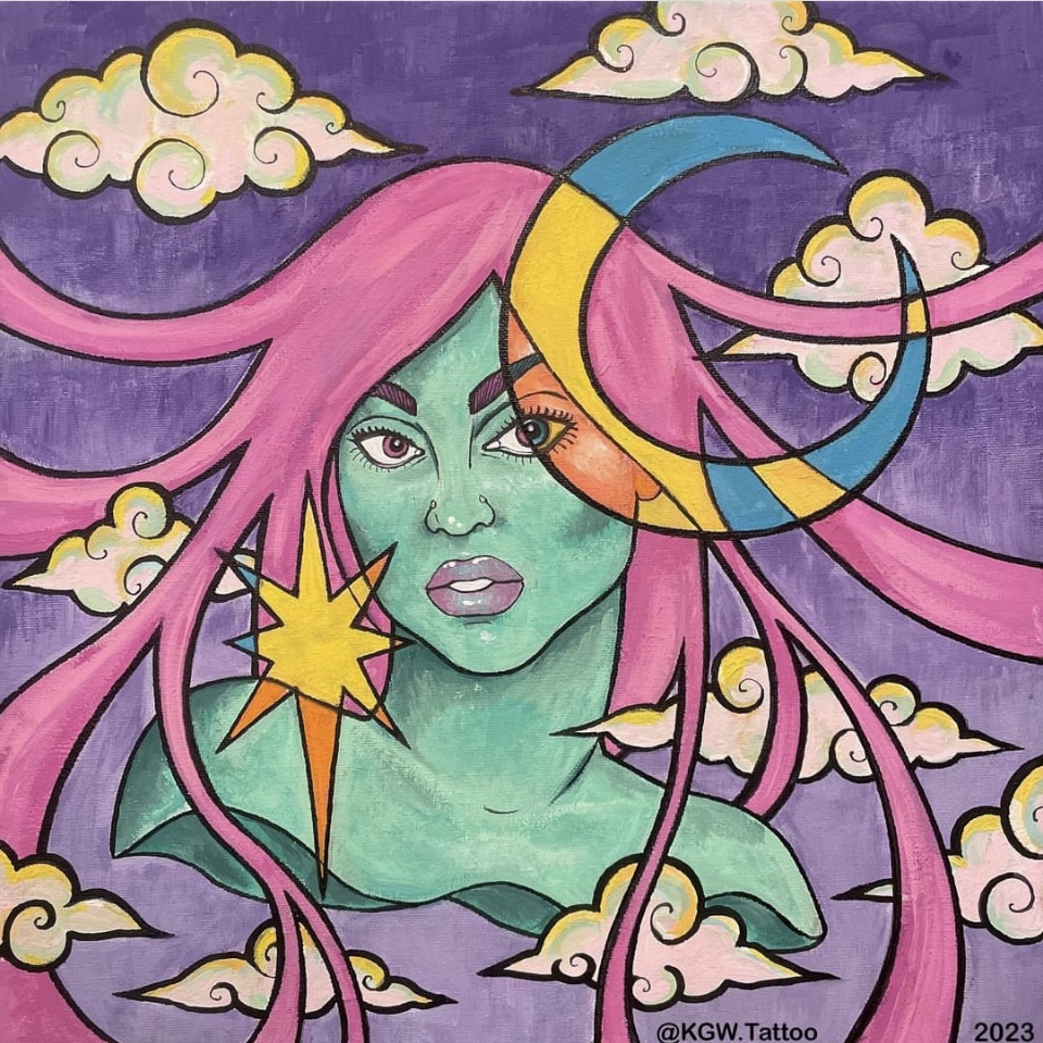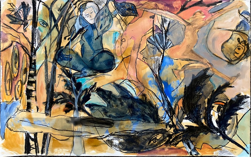Medium: acrylic, watercolor, pastel, collage, oil and ink