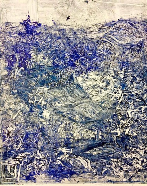 In this new work I want each piece to tell a story, but with only the aura of a story and perhaps its setting doing the telling. I enjoy reading stories and so I’m interested in the ways stories evoke, transport, and enlist the reader into adventures built more out of atmosphere, tone, and voice, than what is ostensibly narrative. While events in life are important, I find it curious, and perhaps it stands as a rule—a great novel is great always despite it’s story. So I look in this new work to explore the question— outside of figure, what are some of the utilities a painting enjoys for creating realities that are at once habitable, intimate, and convincing, I’m also curious about the activity that exists somewhere in the overlap between viewing a painting and reading a text. I like to populate my paintings (suggestively) with what might be perceived as purely imaginary letters, and from alphabets and languages that are equally imagined. Imagined, but are they real? and if so, what are the semiotic, aesthetic, and spatial consequences when such lettering presents itself as not only imaginary, but also biological in form, and sentient in disposition? For me the question occurs simultaneous with the painting becoming embryonic in its outcome, and perhaps even still astral yet in the stage and mode it presents itself to the viewer. And as much as I want my painting to each one tell the particular story of how it came into being, it’s also true I wish for the viewer’s attention to absorb into the painting as one of its happily imagined, and living constituents.