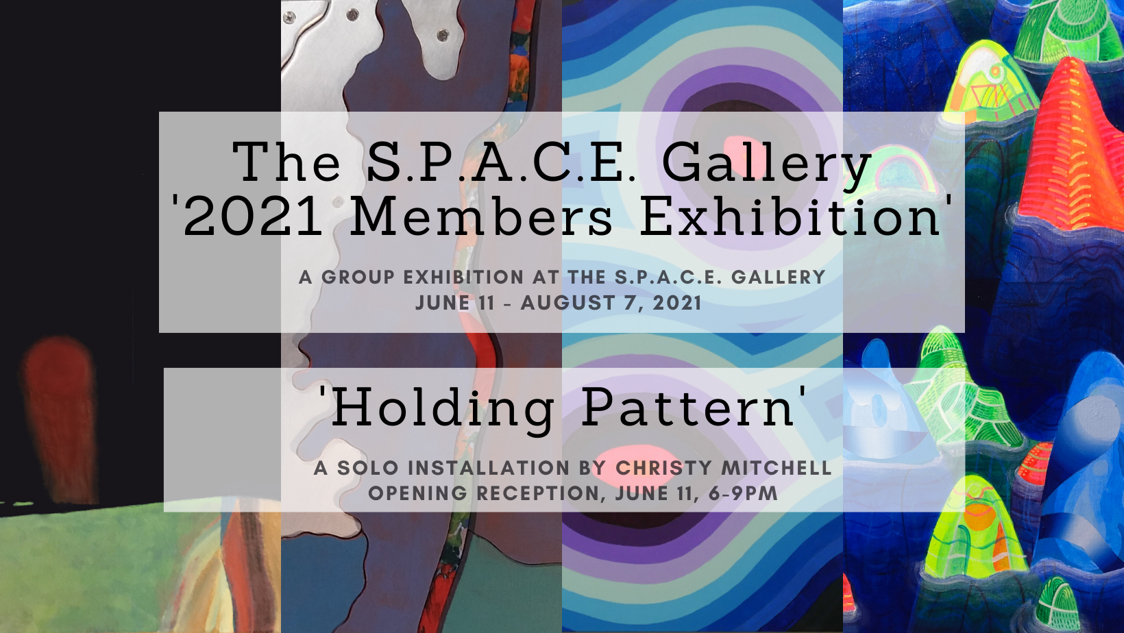 The S.P.A.C.E. Gallery is honored to host an exhibition many months in the making. The title, ‘The Shape of Things’ feels even more poignant now as we struggle to make sense of our world, how we express ourselves, and how we may work together as a community to lift each other up in the face of oppression and seemingly insurmountable challenges. Gallery Director, Christy Mitchell, approached four artists in the past year to participate in a show simply about shape. These artists create work that plays with geometry and with patterns that literally or figuratively appear to float off the standard 2-D frame.