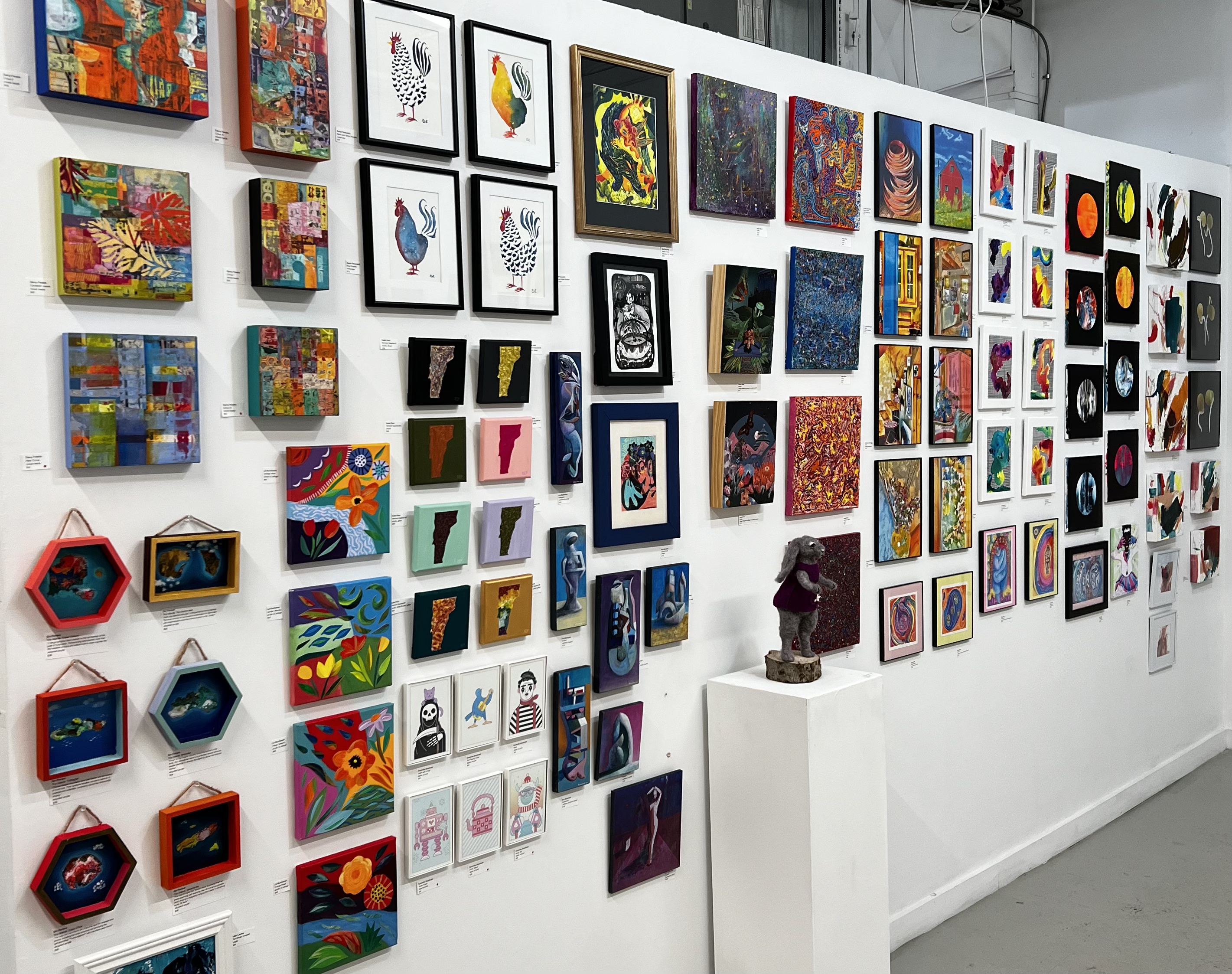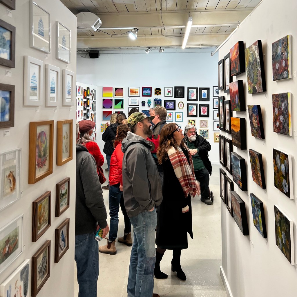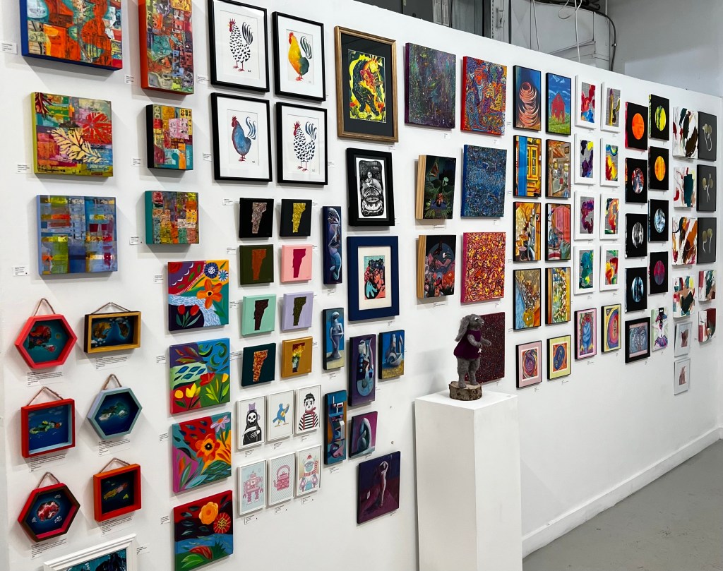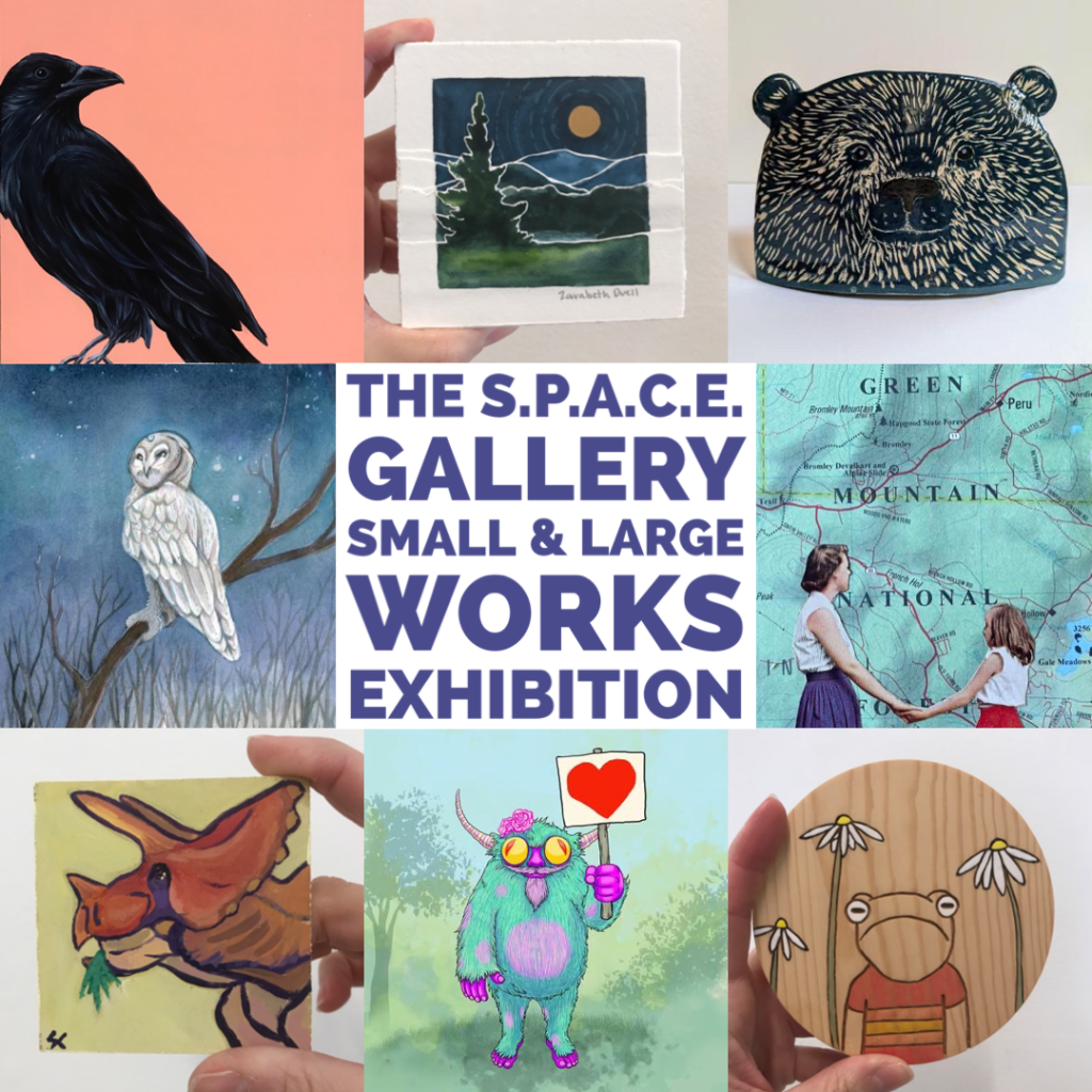 The S.P.A.C.E. Gallery – over 400 small works under 12″, ornament sale to benefit OutRightVT, 12 open artist studios